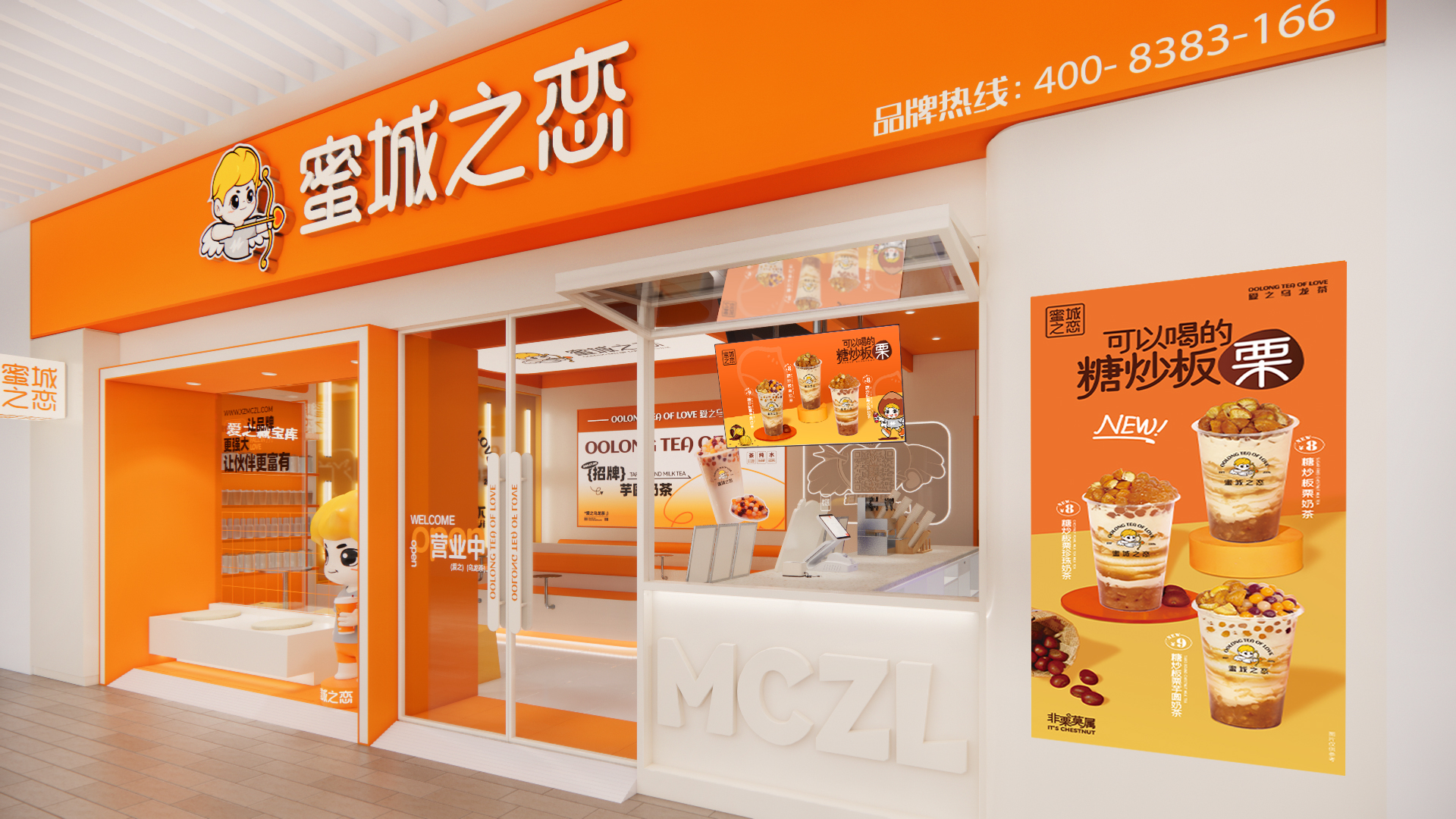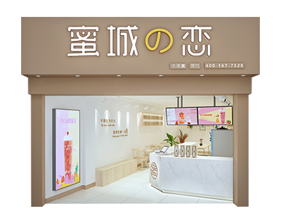將蜜城之戀的主打產(chǎn)品金龍袍全套奶茶展示在外部燈箱上,在最顯眼的位置呈現(xiàn)蜜城之戀的這款具有品牌記憶點的產(chǎn)品